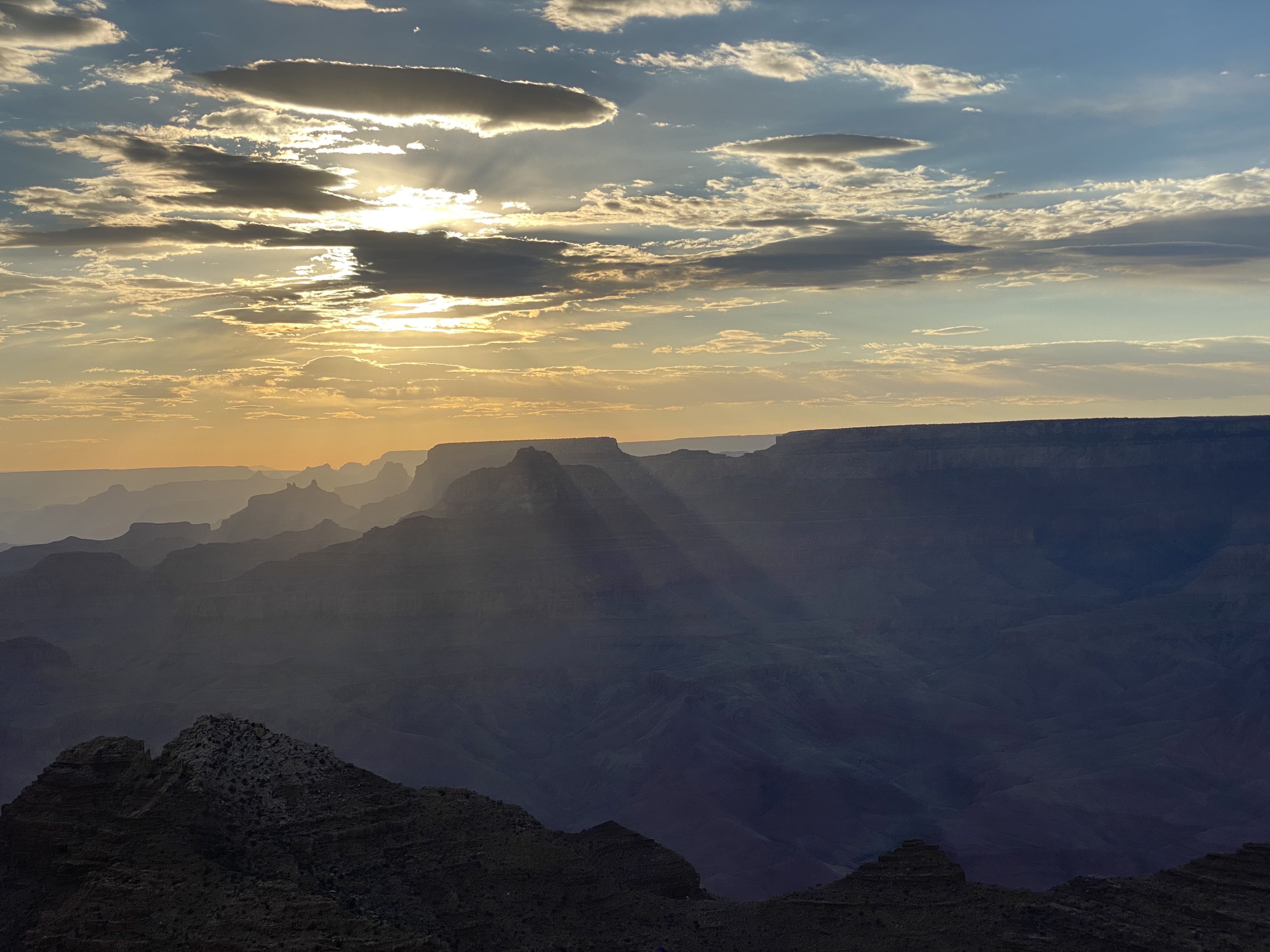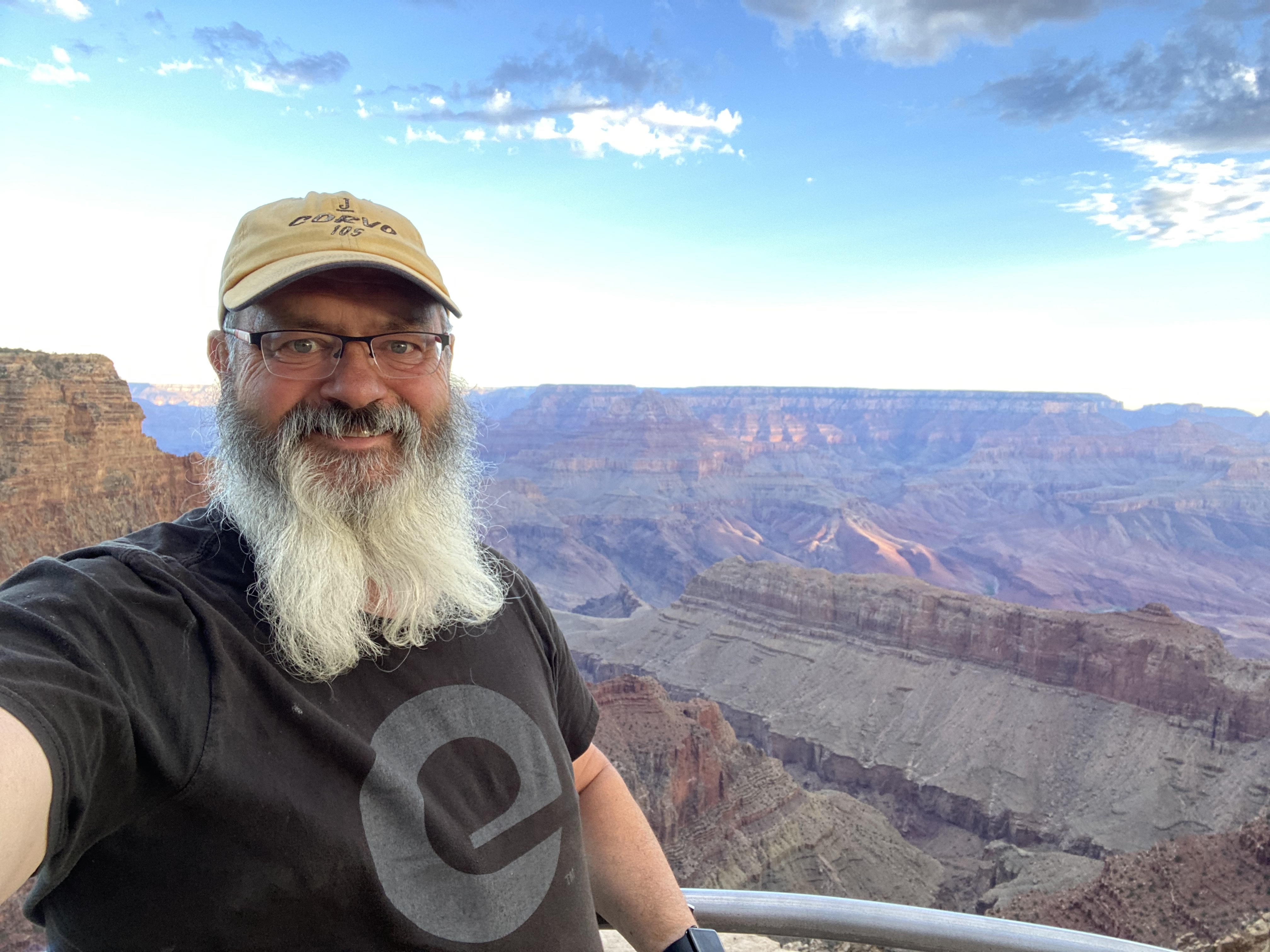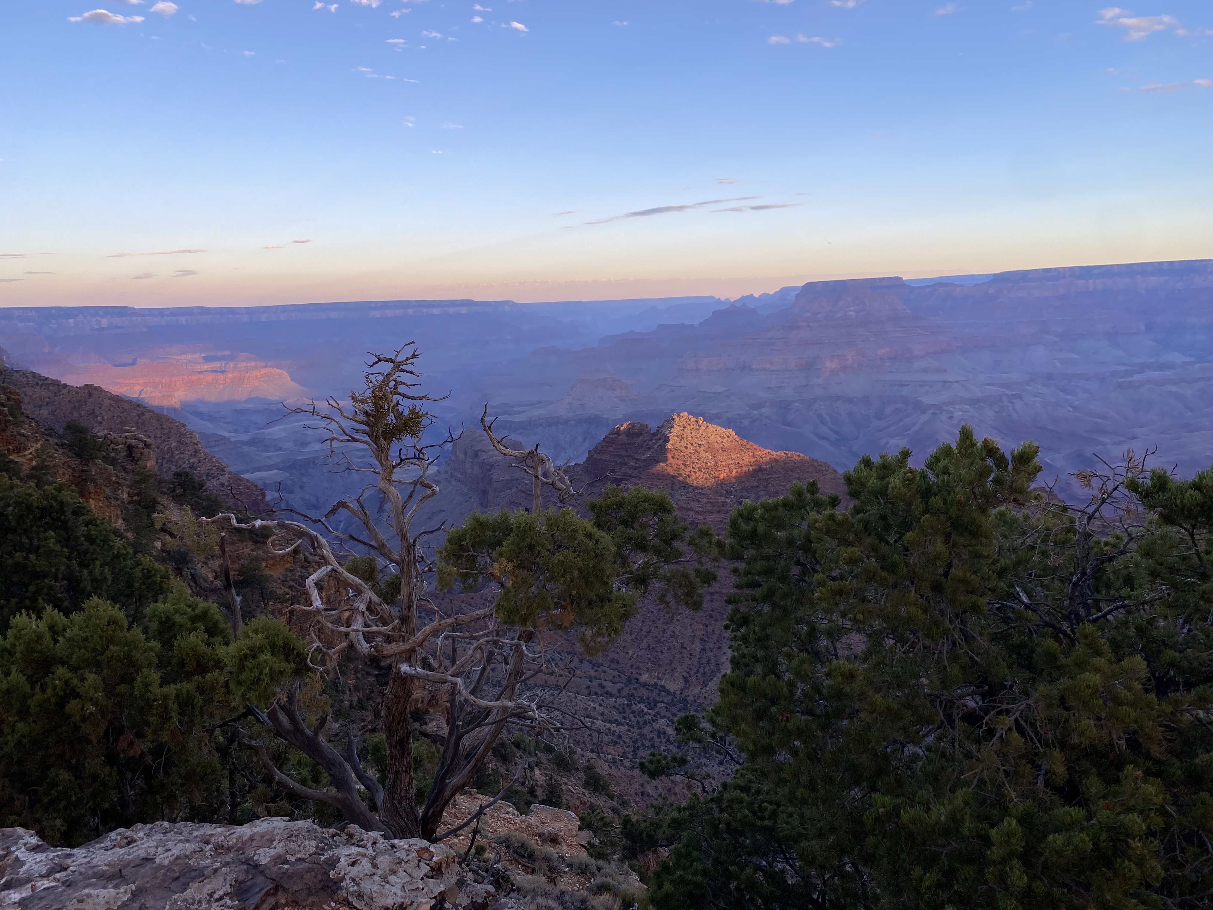 After I rolled out of Sedona, I headed up highway 89 towards the Grand Canyon. Along the way, I dropped in on Jack at his new house and gave him a book that I had purchased for him. And then I headed on out. I got to the Grand Canyon via the east entrance, just before sunset. So I went and got a few pictures of that before backtracking to find a place in the national forest to spend the night. I had a super restful night, and this morning arose at around five and headed back into the park. I stopped at each of the pullouts on my way to the village and got some nice pictures. I was hoping to grab some breakfast at the village, but only one place was open, and they were sold out of their breakfast burritos, so I decided to head on out.