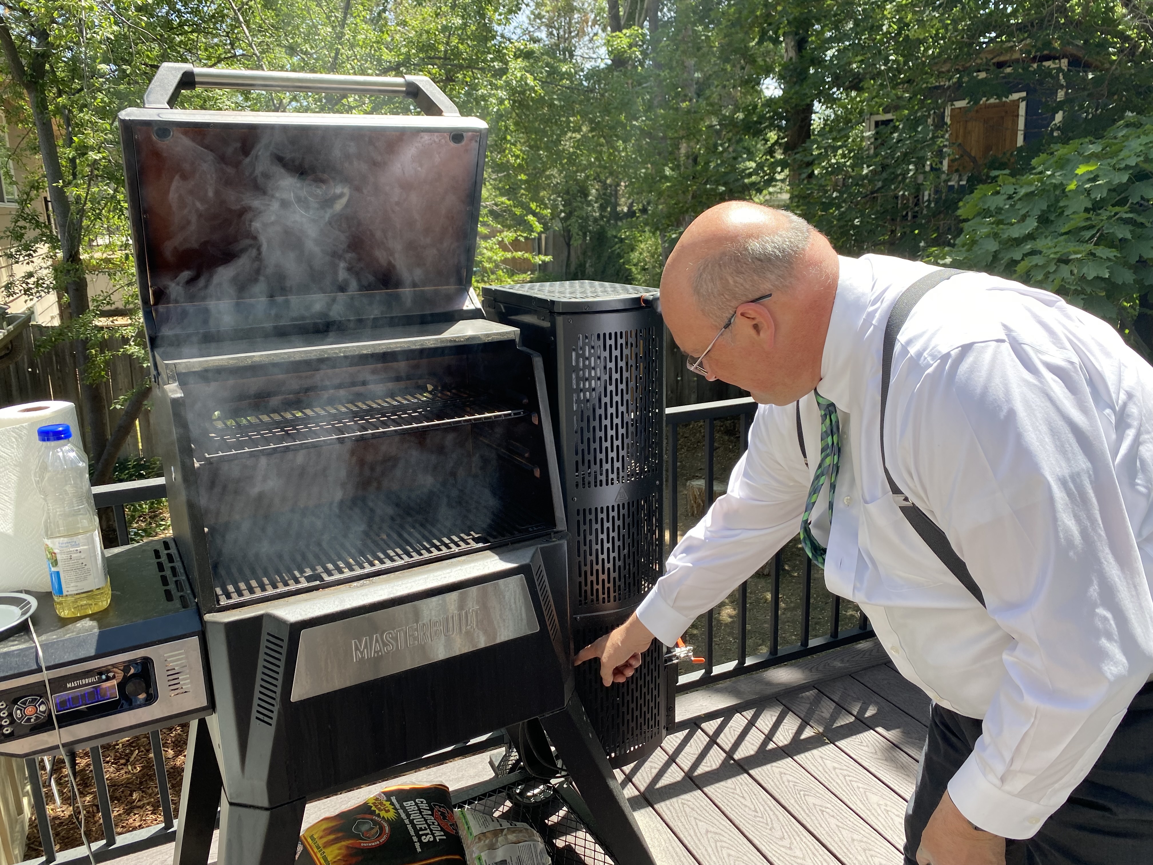Dinner was Ribs, and Dan has a pretty cool BBQ that is charcoal powered and digitally controlled. Dan had some Bishop duties, so I spiced up the Ribs while he was gone, and when he returned, he fired up the grill, and we got the Ribs on there. And then he was off again. I was going to take a nap while he was gone, but I went to check on the grill, and the temp was dropping too far because the fan wouldn’t come on. So I spent 45 minutes troubleshooting that and figured out that a switch wasn’t getting closed all of the way. I placed a small wood chip in the switch, and all was good again. I was pretty impressed with how well that BBQ was able to keep the temp right where we set it.
