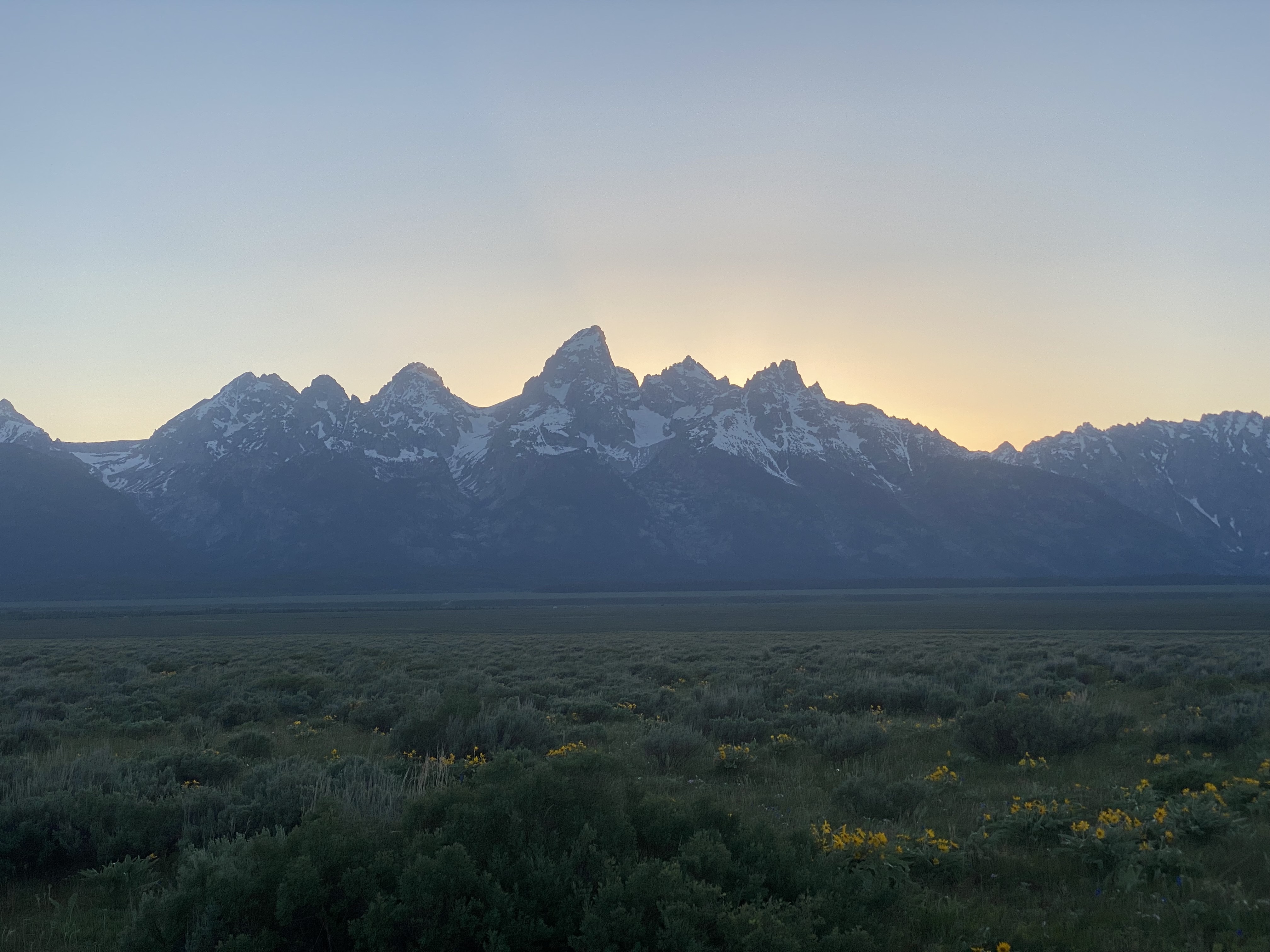 This morning I woke up and drove along the grand Tetons as the sun was rising on my way to Yellowstone national park.