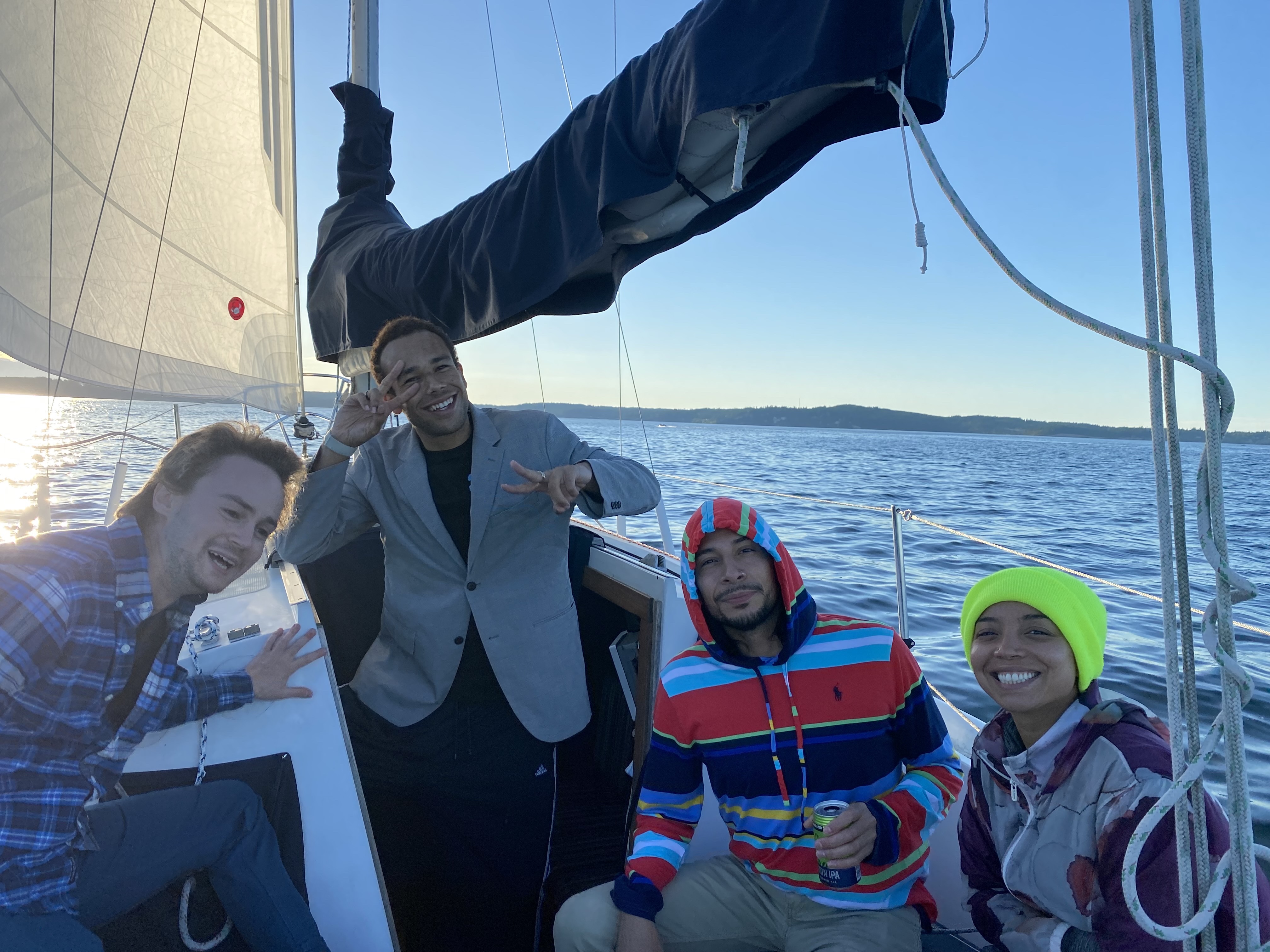 Later in the afternoon, I took the dancers out on the boat for an evening sail, and it was just perfect. Just enough wind to get us over to Bainbridge and back. We reached the marina just as the sun was setting, which is always a special treat for folks.