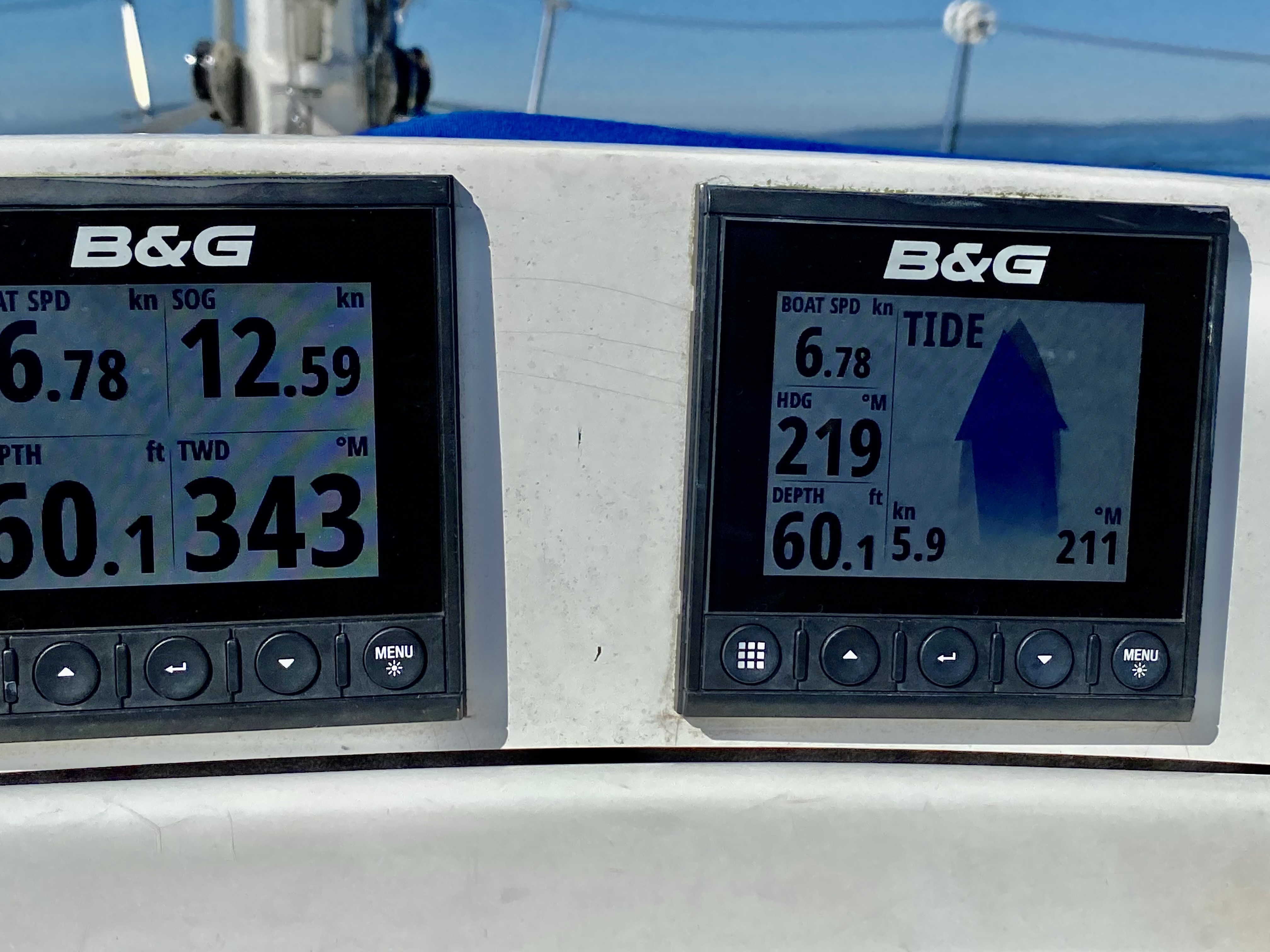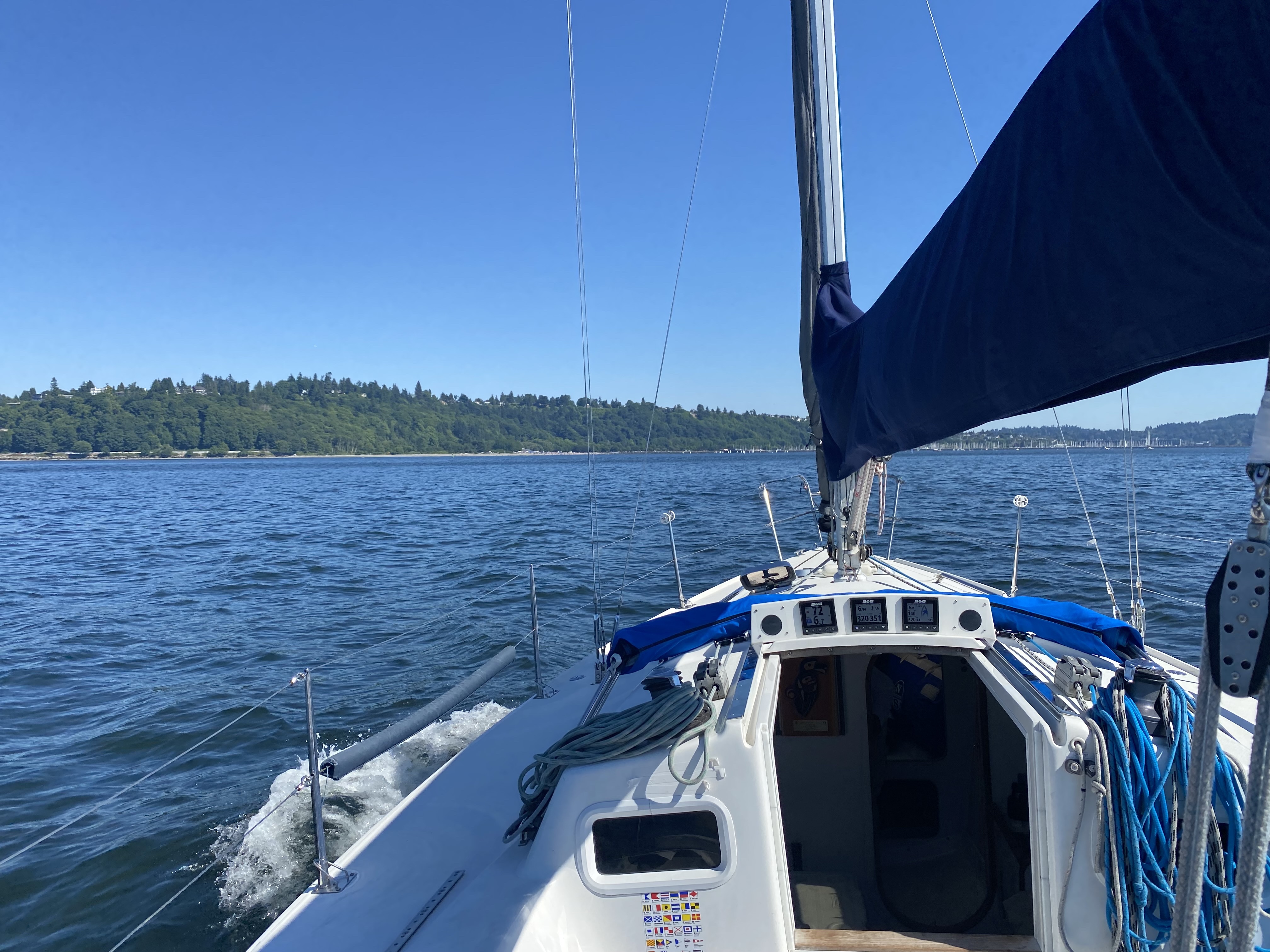 The currents were very advantages for our delivery. We only had about an hour and a half where we were bucking current, and the rest of the time, we were getting a boost from the current, which was very nice. There wasn’t much, if any wind, on the way home, so that was nice since it kept the water flat. I don’t think we splashed waves over the bow once on the entire delivery. It was just spectacular.