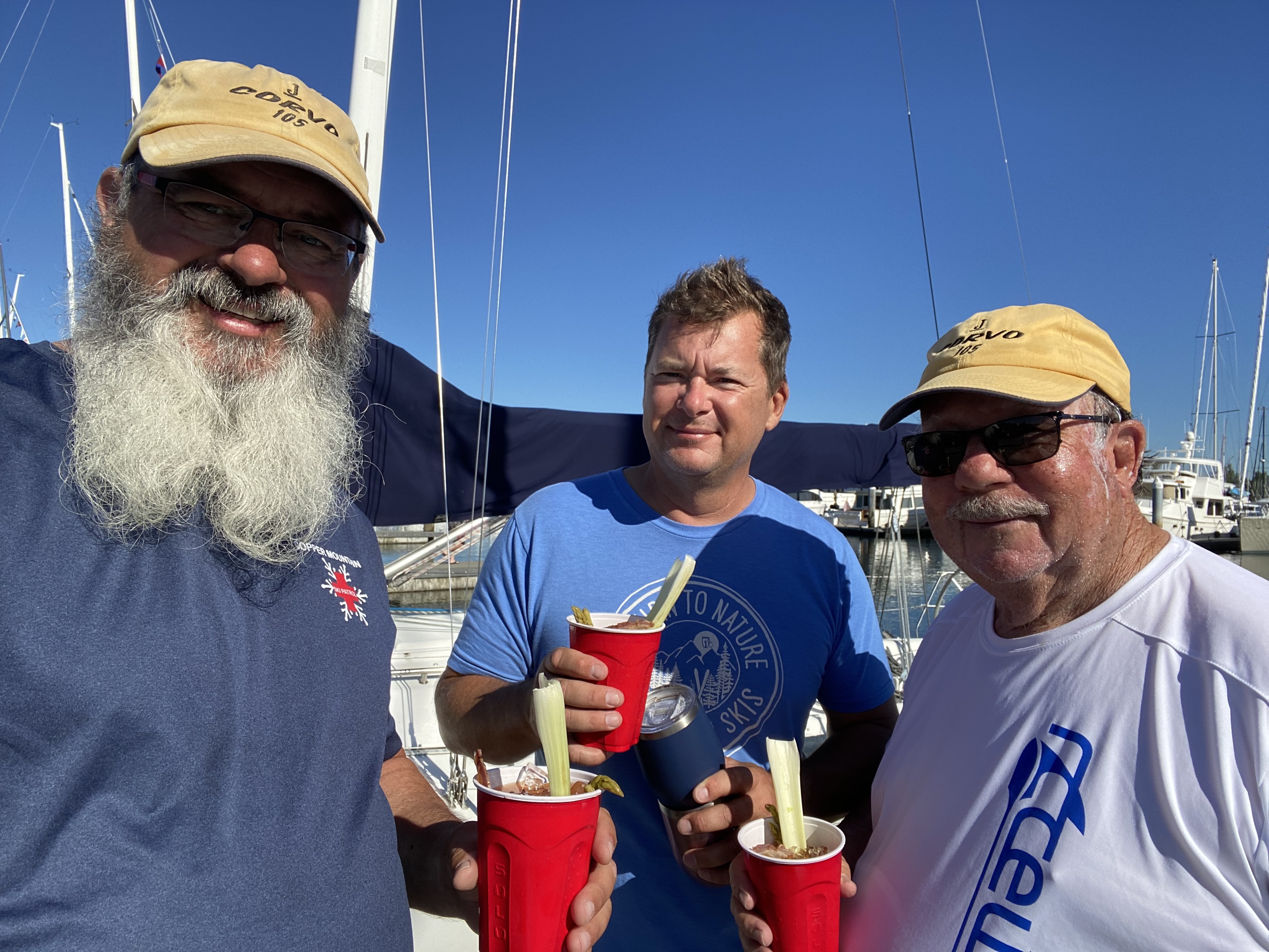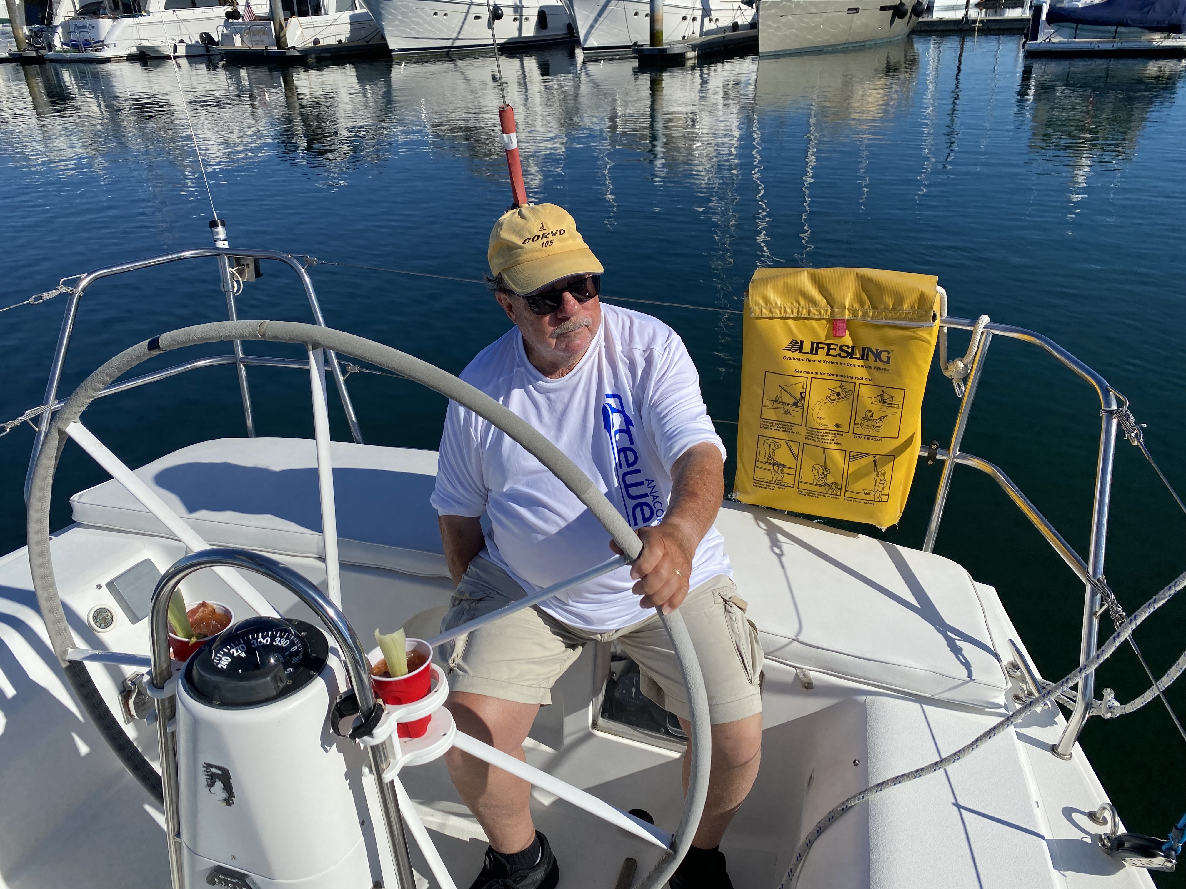 Man, yesterday was a pretty stellar day! I got up early and did the shopping run with Stefan for the Anacortes delivery home. I picked up some ice, breakfast makings, sandwiches. It’s incredible how much stuff you don’t buy when you realize that you have to carry it back to the boat. ;). Not that the boat is all that far in Anacortes, but still. By 7:30 am, it was already getting warm, and there wasn’t a lot of wind to help cool things off. However, we did get a goodbye gift of some bloody Mary’s from our new friends Emily and Dustin.